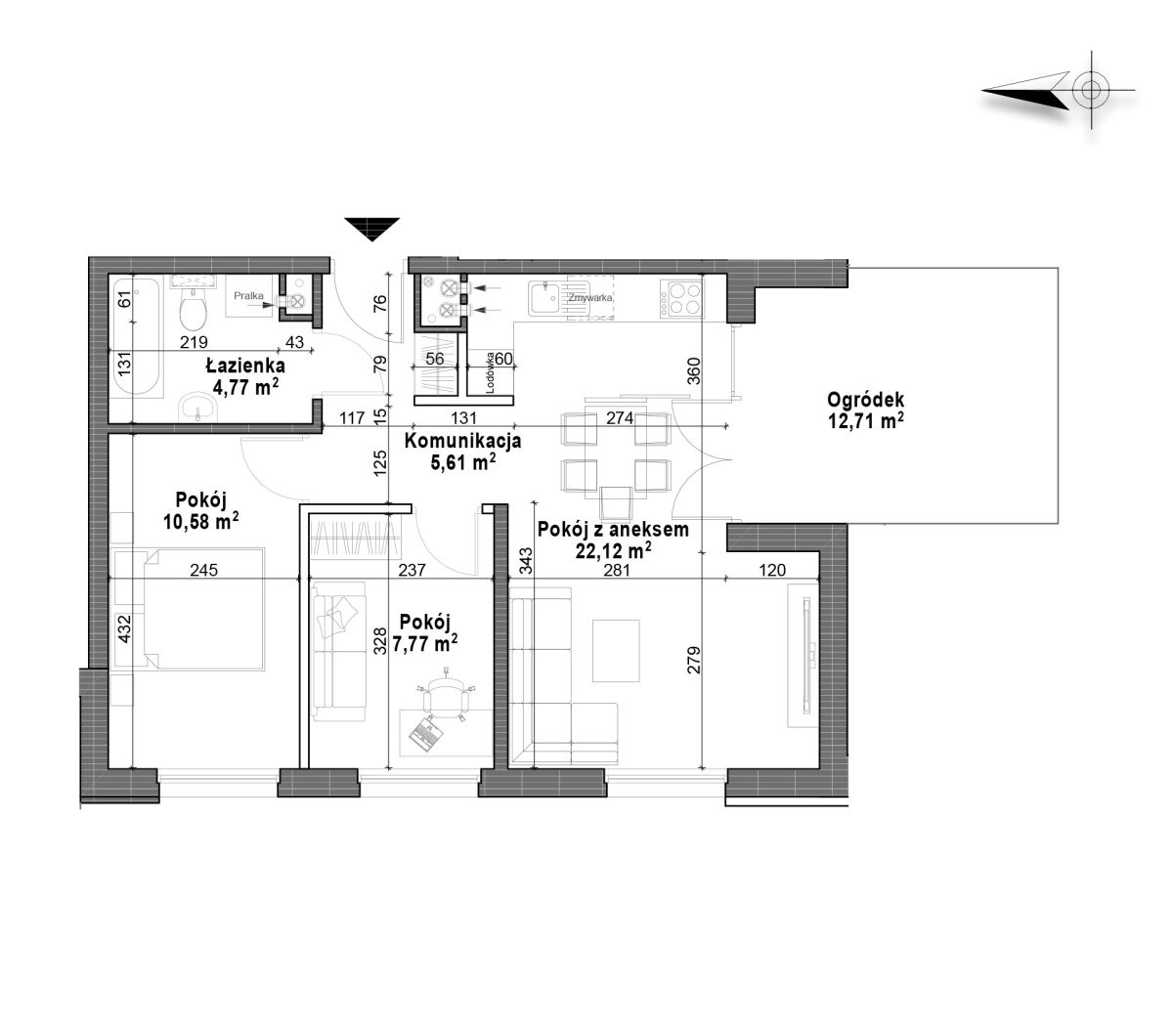 Pow. ogródka/tarasu 12.71 m2
