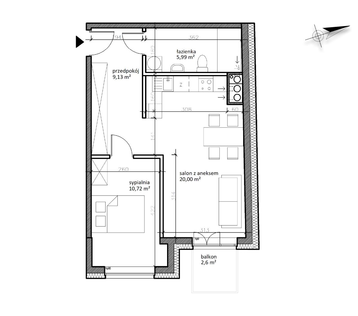 Pow. mieszkalna 45.84 m2