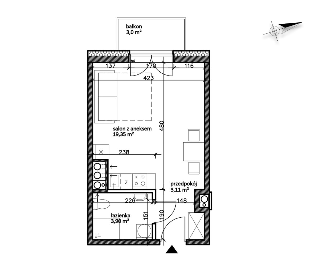 Pow. mieszkalna 26.36 m2