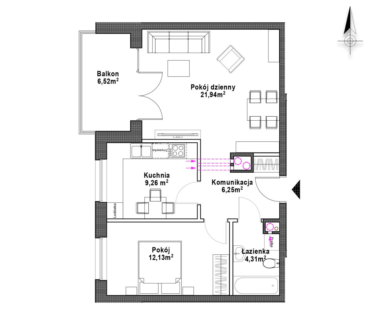 Pow. mieszkalna 53.89 m2