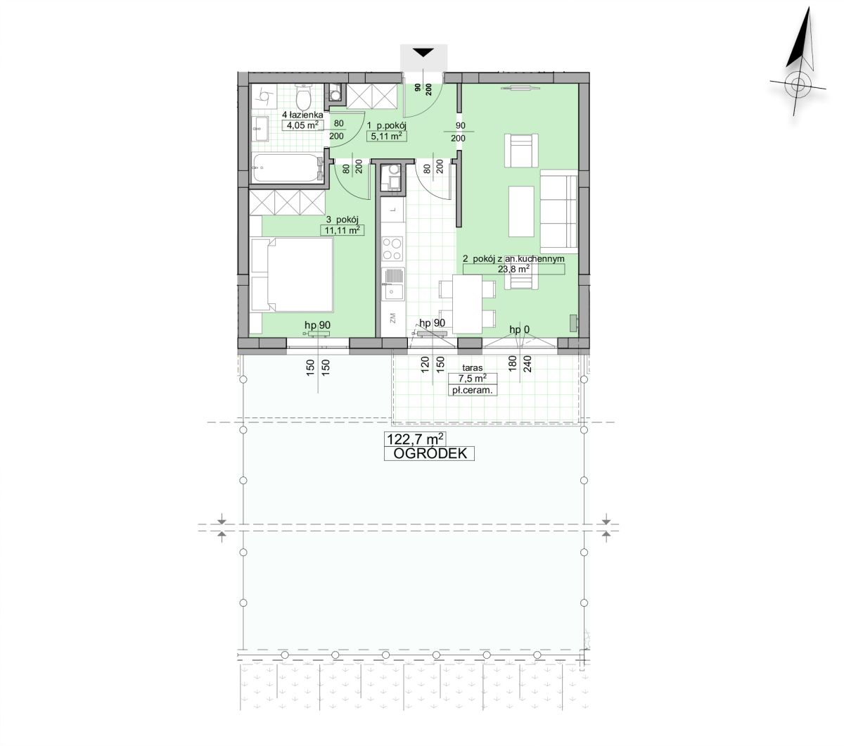 Pow. ogródka/tarasu 122.70 m2